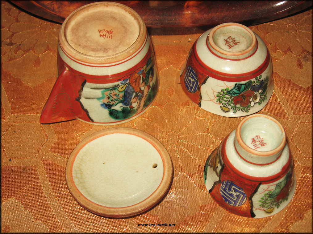 Objem: 150 ml. Čajová souprava z Kutani Shozo. Krásná sedmidílná čajová souprava z japonského kutani porcelánu. Styl je Shoza